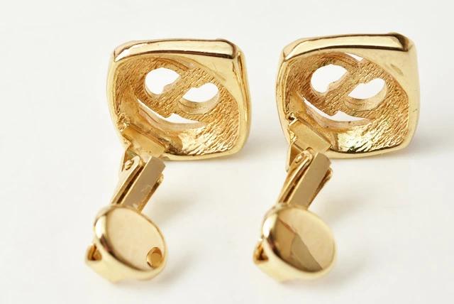 Christian Dior Earrings Christian Dior Vintage CD Logo Motif Rhinestone Gold [Used] [Reuse Brand Coupon] Limited number available at participating stores!