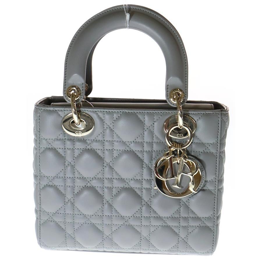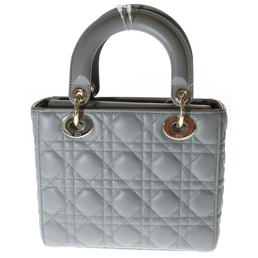 [モデル]Lady Dior My ABCDior マイレディディオール カナージュ 2WAY チャーム付レザーハンドバッグ ショルダーバッグ グレー レディース