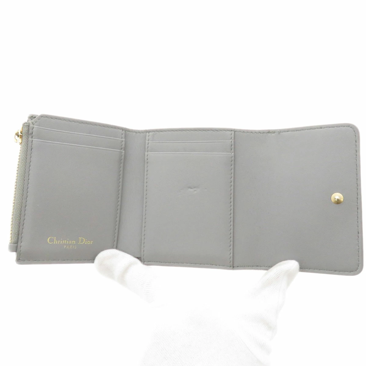 レディース二つ折り財布(小銭入れあり)CHRISTIAN DIORカラー:グレー系カーフコンディションAB+(ABプラス)ランク