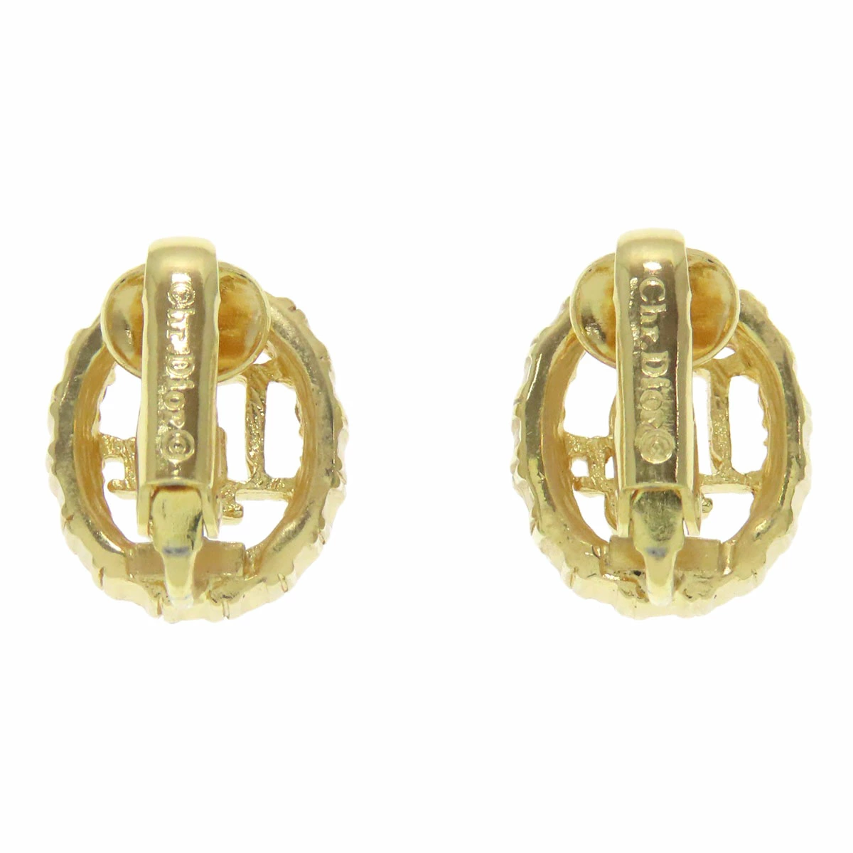 Christian Dior Logo Rhinestone Earrings, Metal, Women's [Pre-owned] [CHRISTIAN DIOR]