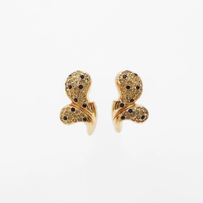 Christian Dior Rhinestone Earrings, Gold, WS11424 (Pre-owned)