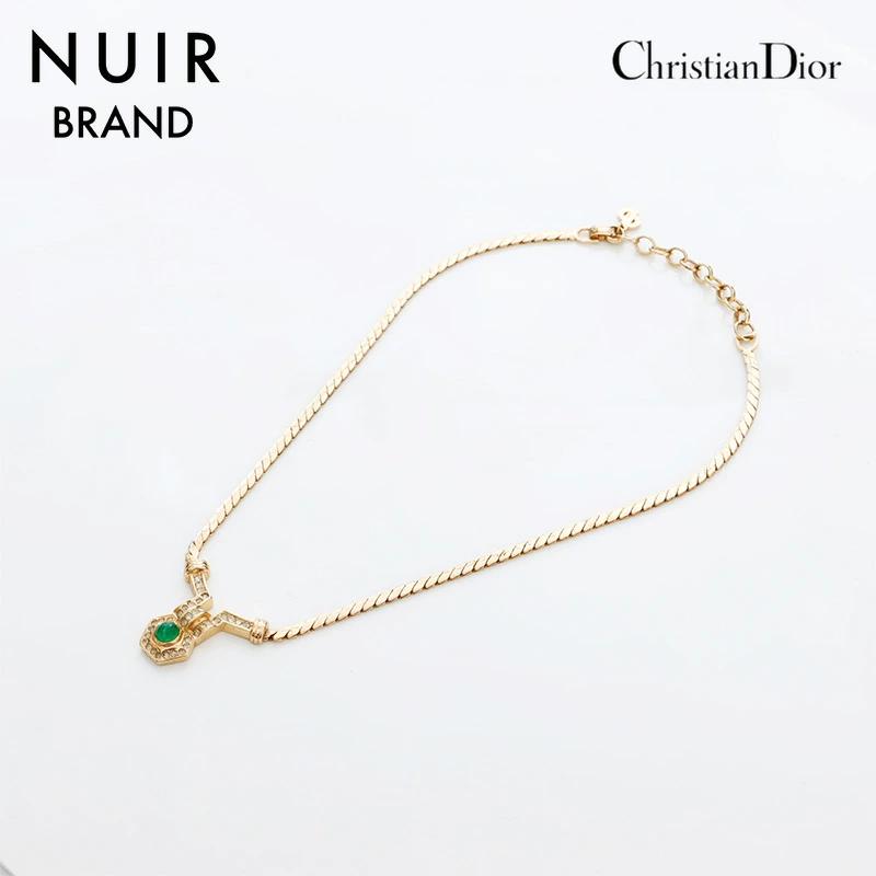 Christian Dior Rhinestone Green Necklace in Gold, WS8958 (Pre-owned)