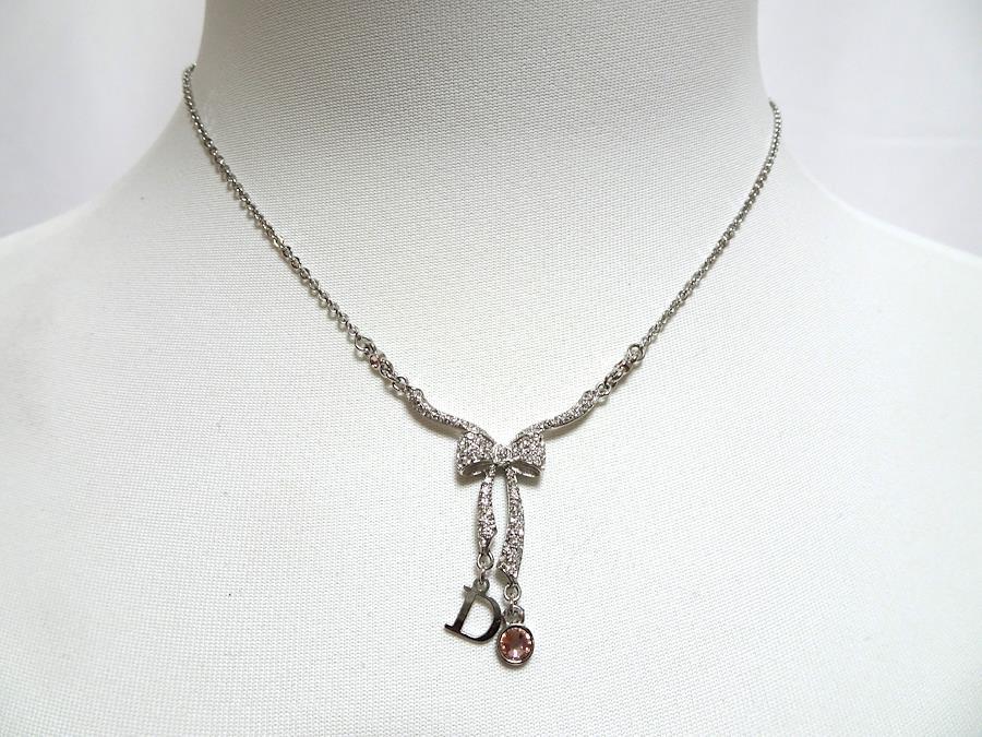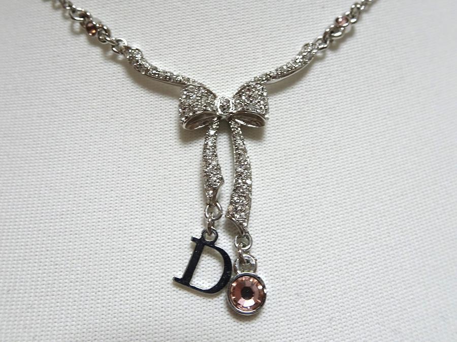 商品名:Christian Dior (クリスチャン ディオール) リボンモチーフ ライトストーン ネックレス レディース