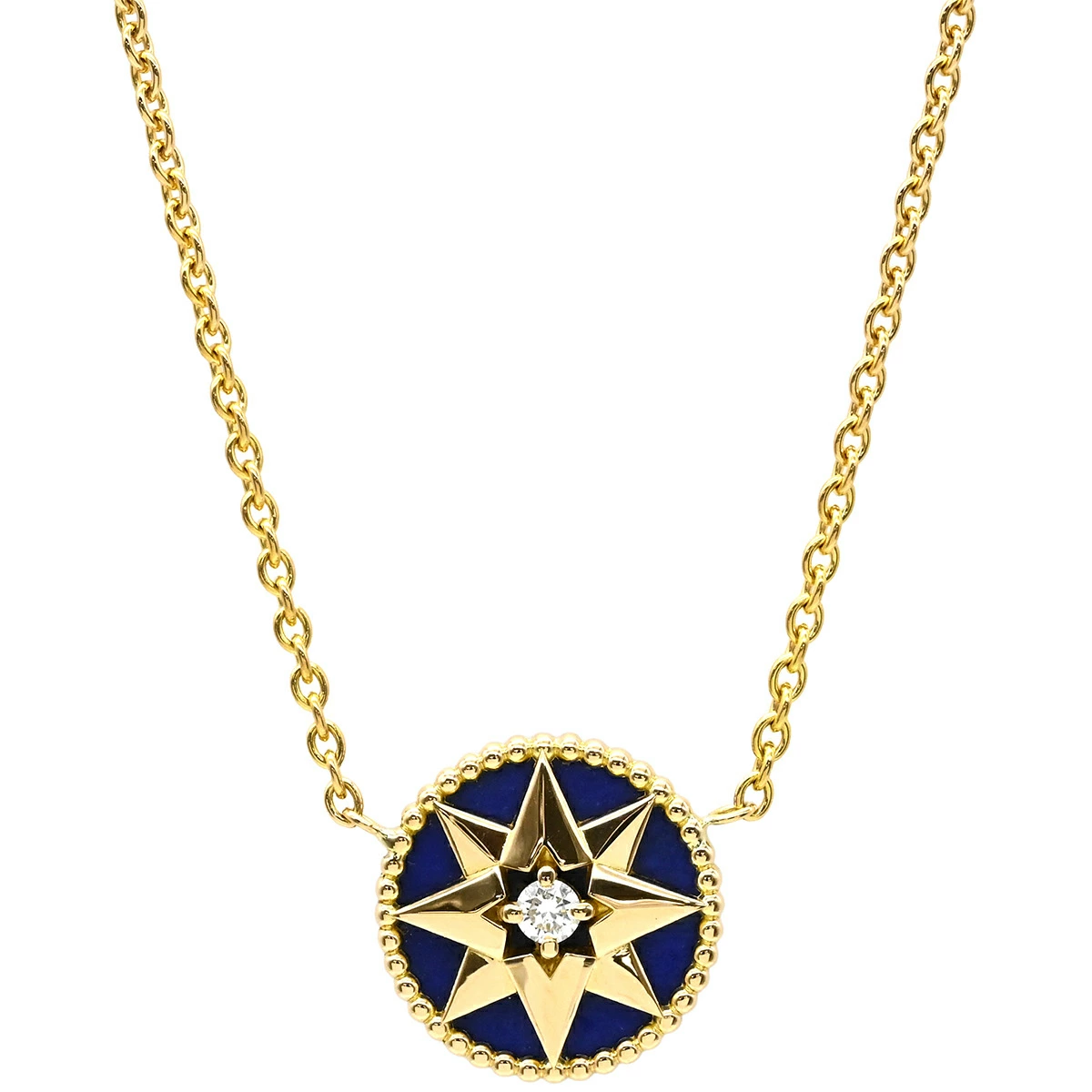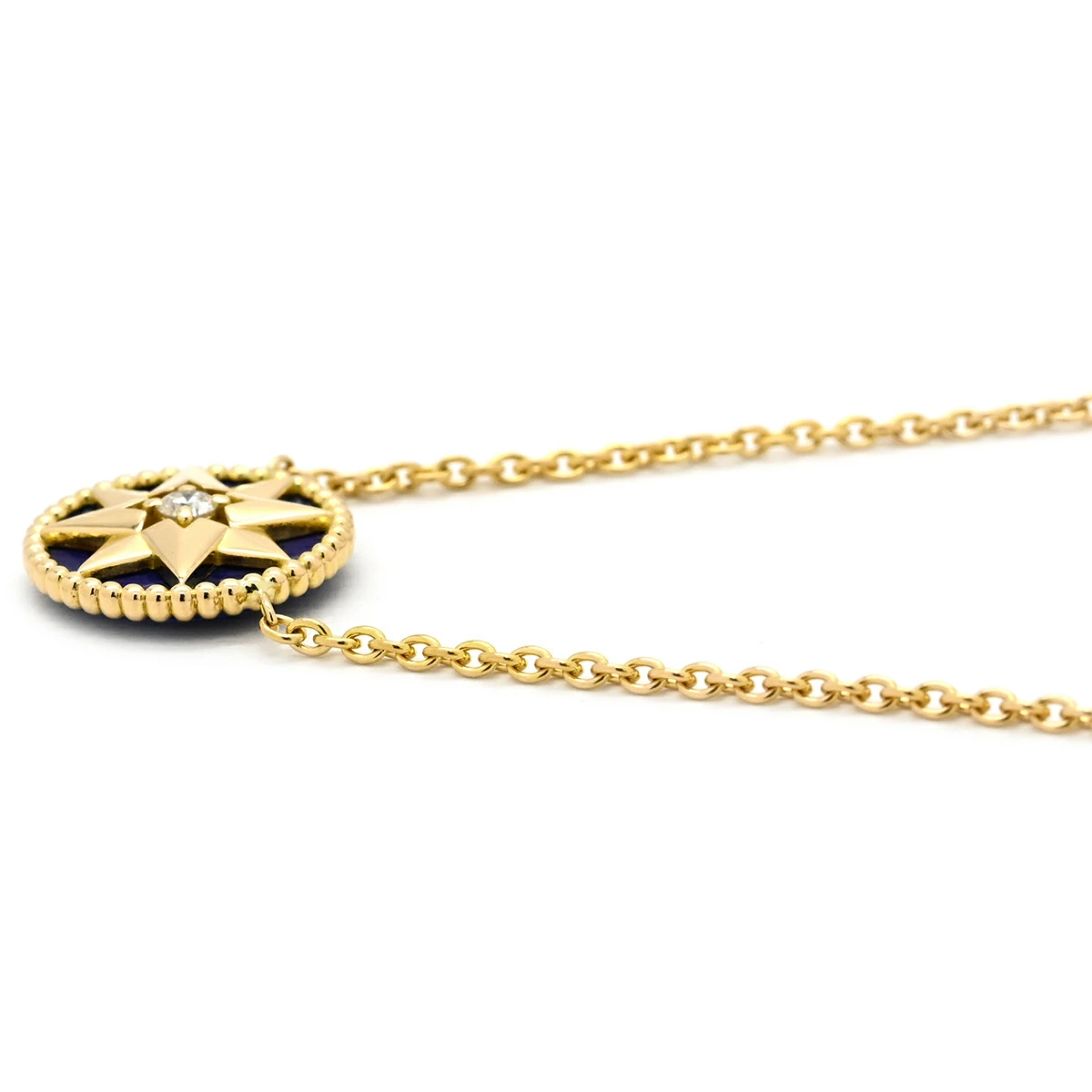 クリスチャン・ディオール Christian Dior ネックレス ローズ デヴァン メダリオン ミディアム ローズ デヴァン K18YG ダイヤモンド ラピスラズリ イエローゴールド Dior Au750 18K ラピスラズリ ダイヤ 一粒 - レディース定番 人気 美品 【中古】