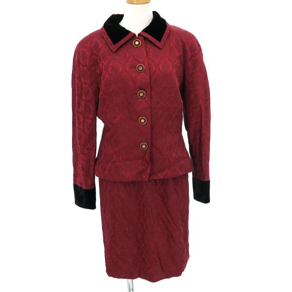 ■採寸#裄丈80cm B94cm 着丈52cmW68cm 丈53cm■素材表地:レーヨン70% アセテート30%衿・カフス パイル:レーヨン100%グランド:綿64% 絹31%裏地:キュプラ(スカート)表地:レーヨン70% アセテート30%裏地:キュプラ■コメントクリスチャンディオールより赤色のセットアップが入荷いたしました。襟部分に汚れがあり、ジャケットとスカート共に強めのしわ感がありますので、一度クリーニングに出された方がよろしいかと思われます。高級感があり、オススメです!お気軽にお問い合わせくださいませ。
