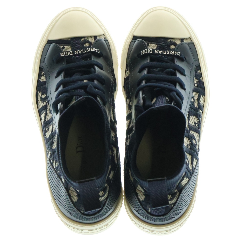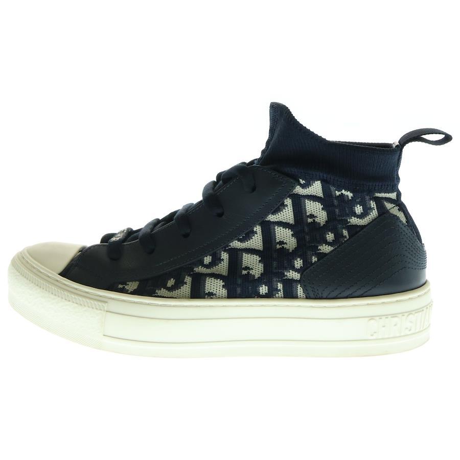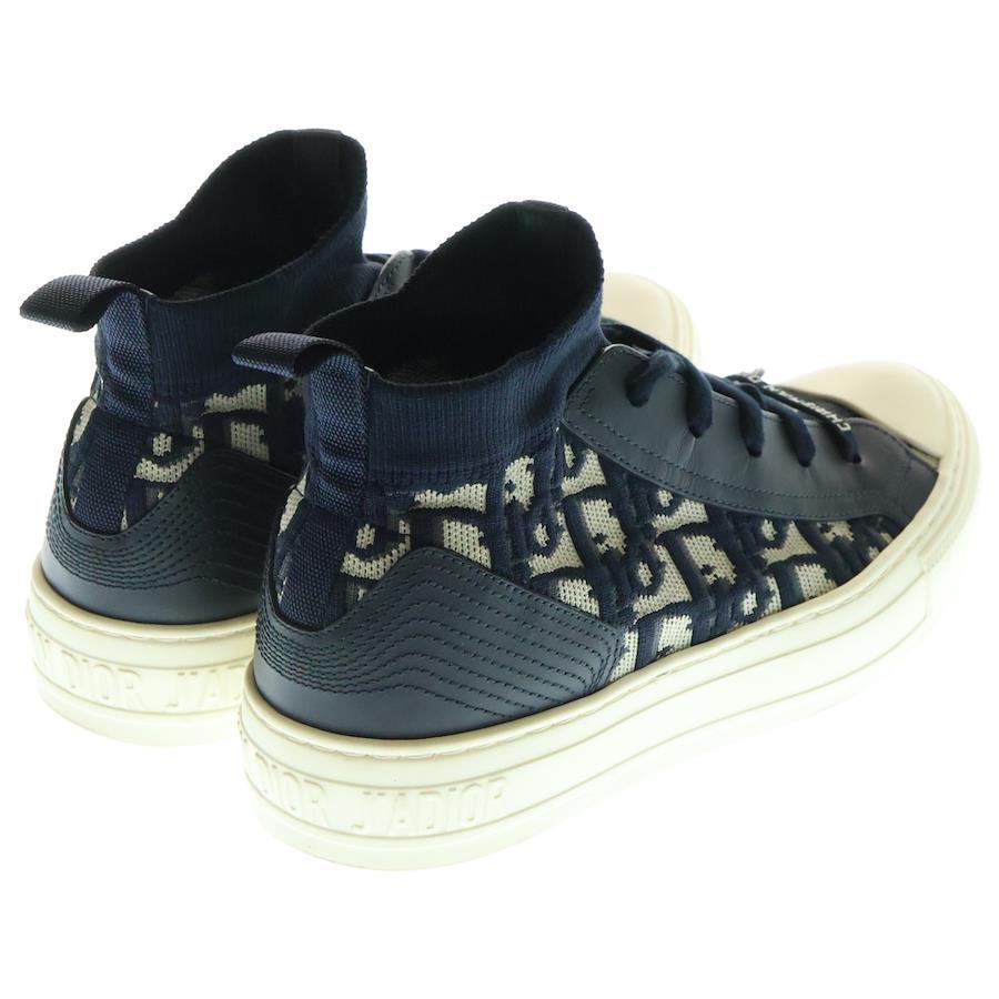 [モデル]Walk'n'Dior ウォーキンディオール オブリーク トロッター柄 レザー ニット ミッドカットスニーカー シューズ ネイビー/ホワイト レディース KCK233TOK56B36