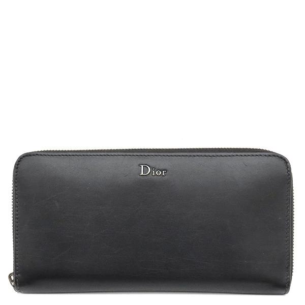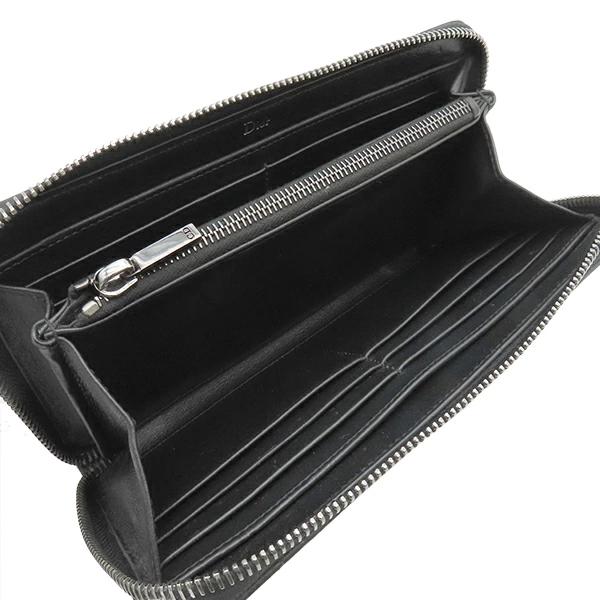 クリスチャン・ディオール Christian Dior 長財布 ジッピーウォレット DIOR HOMME レザー ブラック 黒 ロゴ ラウンドジップ シルバー金具 2UFBC011XLA メンズ レディース ユニセックス 【箱】 【中古】