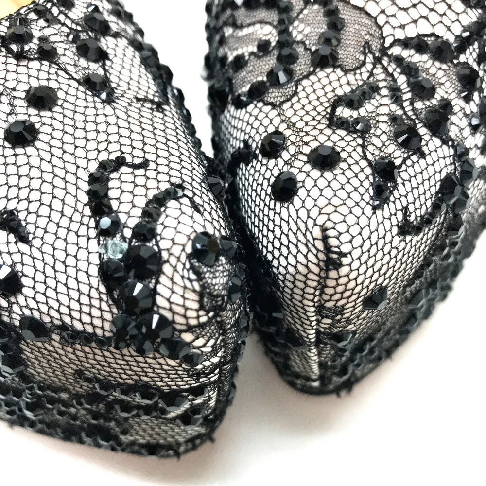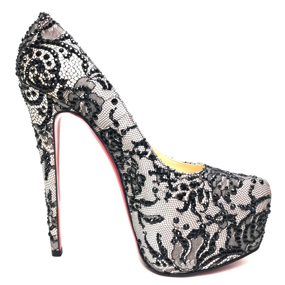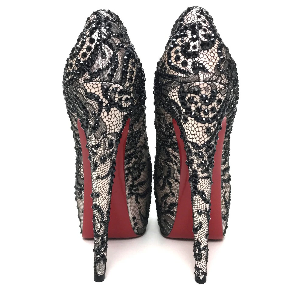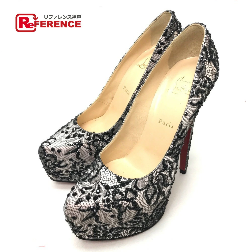 Christian Louboutin Lace Pumps in Sequins and Satin, Women's, Black, Unused, Pre-owned