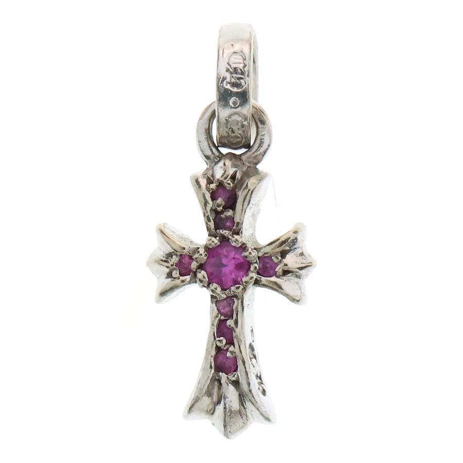 Chrome Hearts 18KWG CRS BBYFAT P/SAP Baby Fat Cross Pave Pink Sapphire Pendant Top in White Gold - White Gold