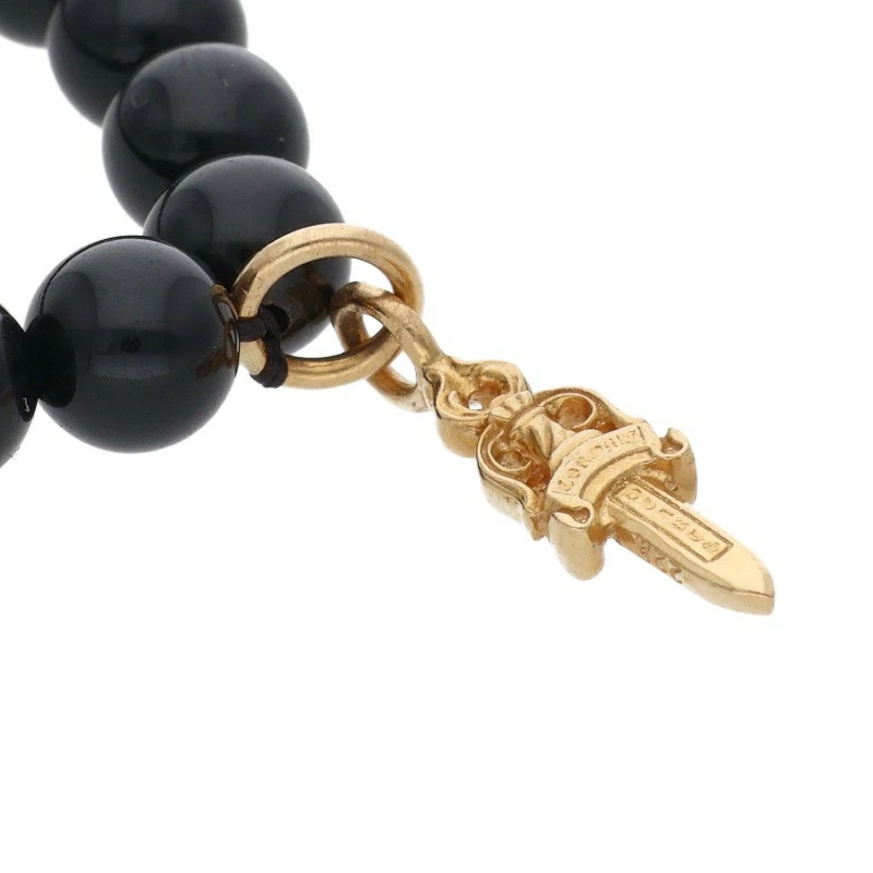 Chrome Hearts 22k 6mm BEAD 6mm Bead Bracelet Stack Dagger BEAD 6mm Black Bead Bracelet (Black x Yellow Gold, Total Weight 14.47g) [614062] [OK15] [Accessories] [Used] bb450#rinkan*B