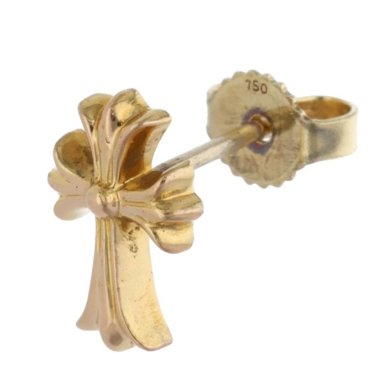 Chrome Hearts 22K CH CRSS 2 FAT CH Cross Fat Stud Gold Earrings (Yellow Gold 1.31g) [038052] [NO05] [Accessories] [Pre-owned] bb432#rinkan*B