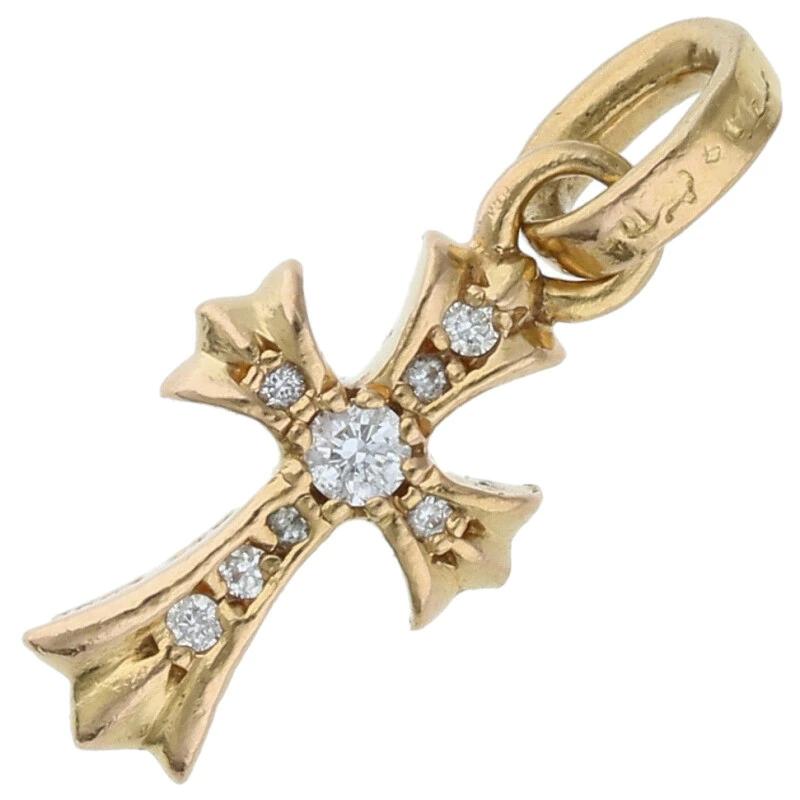 Chrome Hearts 22K CRS BBYFAT P DMND Baby Fat Pave Diamond Charm Gold Necklace Top (Yellow Gold and Clear, 3.15g) [215052] [OS06] [Accessories] [Pre-owned] bb453#rinkan*B