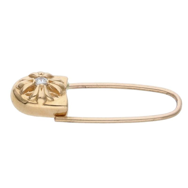 Chrome Hearts 22K ER SAFETY PIN DIA Safety Pin with 1 Diamond Gold Earrings (Yellow Gold and Clear, 2.83g) [015052] [SJ02] [Accessories] [Pre-owned] bb415#rinkan*B