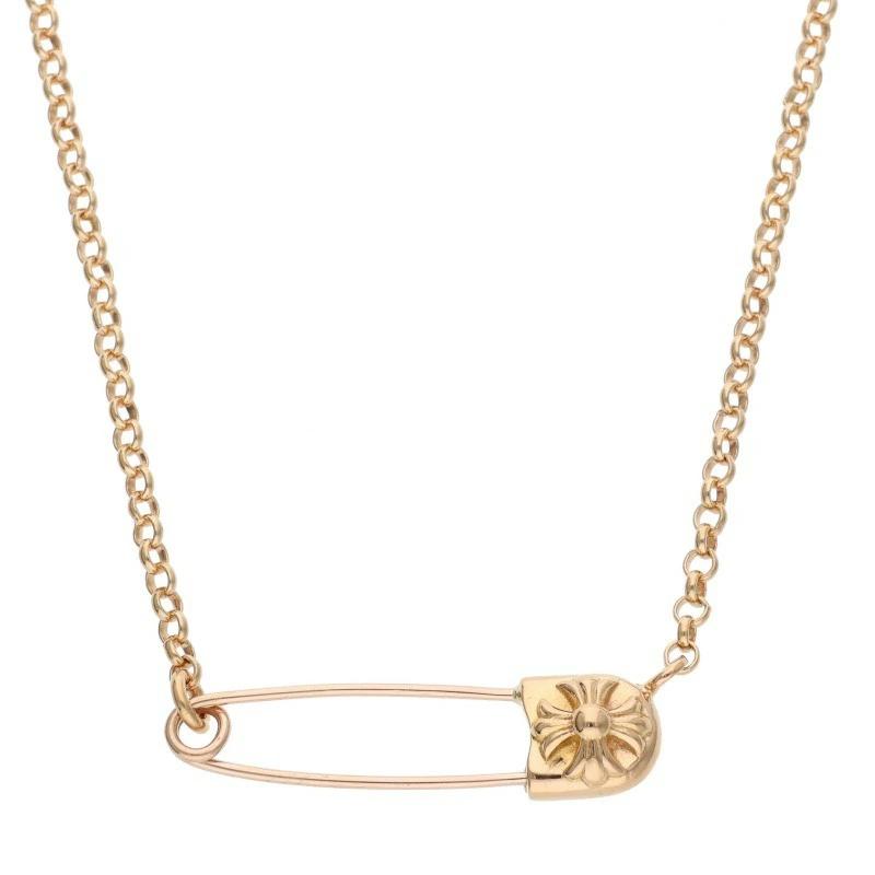 Chrome Hearts 22K Safety Pin R16 Gold Necklace with Safety Pin Roll Chain (10.84g Yellow Gold) Size: 16 inches [821152] [SS07] [Accessories] [Pre-owned] bb134#rinkan*B