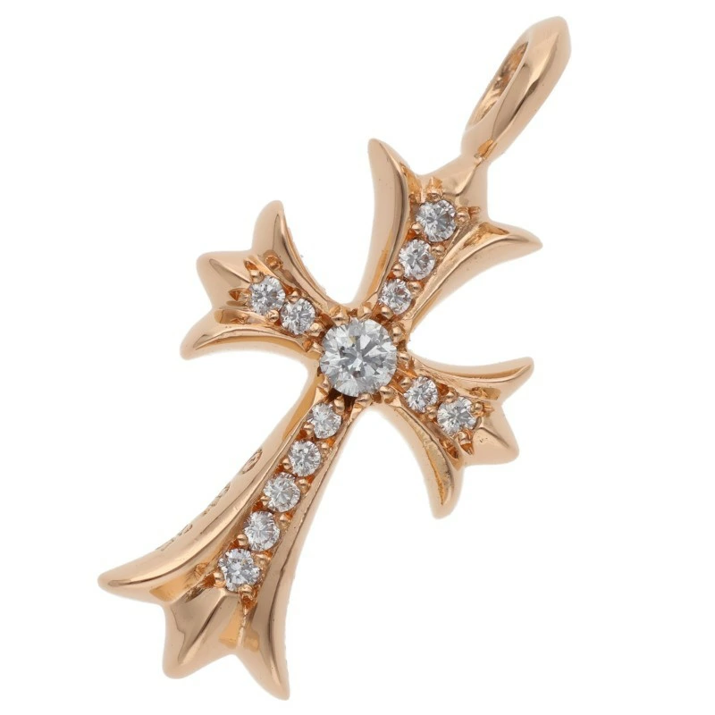 Chrome Hearts 22K TNY CRSF P DMND Tiny Fat Cross PAVE Diamond Pendant Gold Necklace Top (Yellow Gold x Clear 9.87g) [024062] [GZ11] [Accessories] [Used] bb448#rinkan*B
