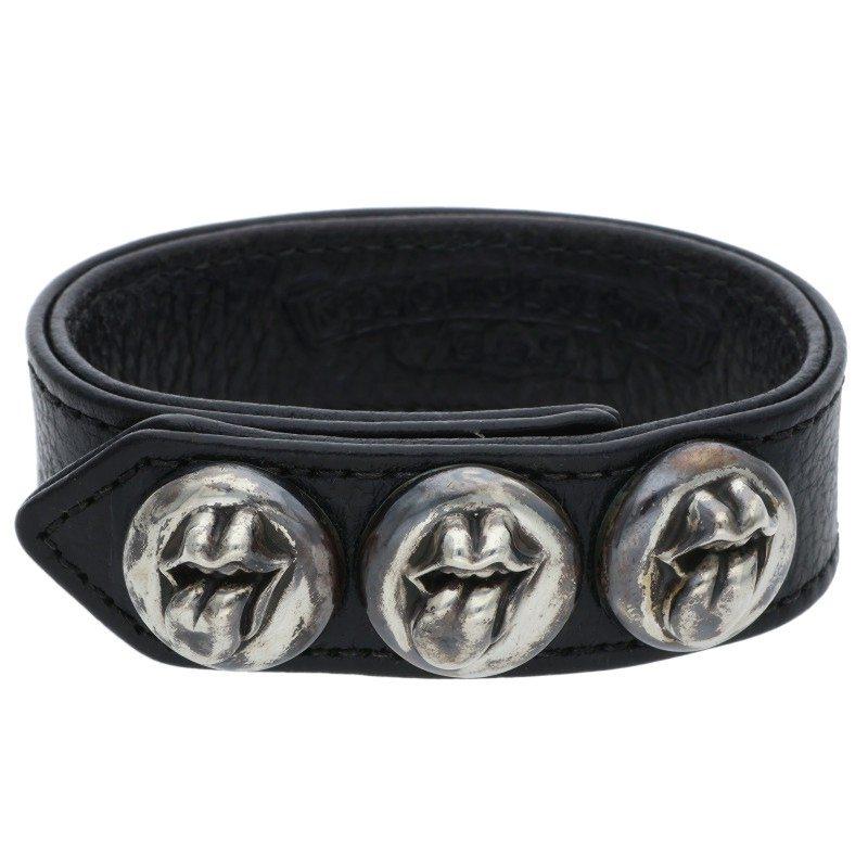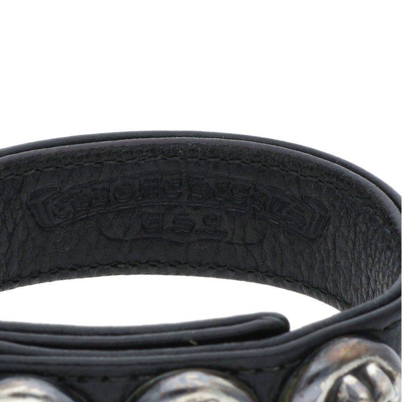 Chrome Hearts 3BTN 2SNP Rip and Tongue 3-Button 2-Snap Leather Bracelet (Black and Silver, Total Weight 50.52g) [602152] [SS07] [Accessories] [Pre-owned] bb377#rinkan*B