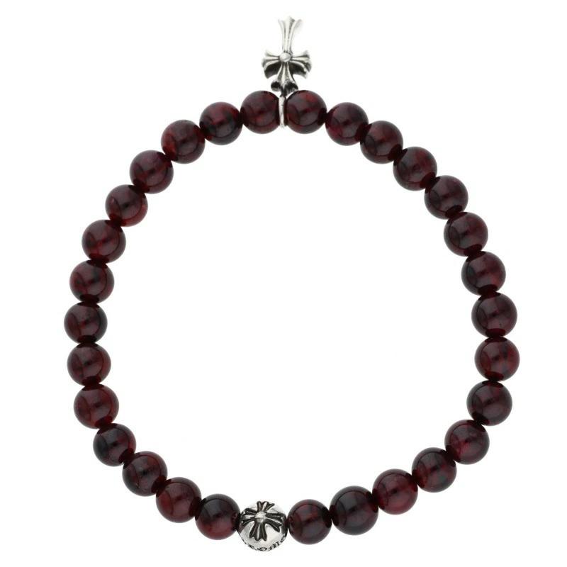 Chrome Hearts 6mm Bead Bracelet (Bordeaux and Silver, Total Weight 13.6g) [609052] [NO05] [Accessory] [Pre-owned] bb76#rinkan*B