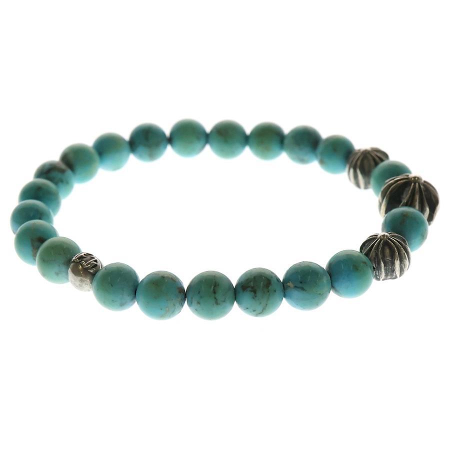 ■商品情報[商品番号]2125H020010[ブランド]CHROME HEARTS(クロムハーツ)[モデル]8mm BEAD ビーズ ブレスレット シルバー/ターコイズ[サイズ]全長:20.5センチ 幅:8.7ミリ 重さ:23.29グラム表記サイズ:‐■状態・コンディション[状態ランク]ランク B使用感有り全体的にキズ/くすみ有り[備考]テグス変更有り