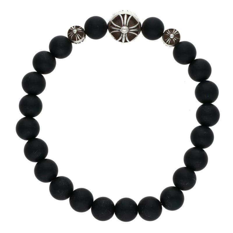 Chrome Hearts 8mm Onyx Bead Bracelet (Black and Silver, Total Weight 26.06g) [809052] [OS06] [Accessories] [Pre-owned] bb359#rinkan*B
