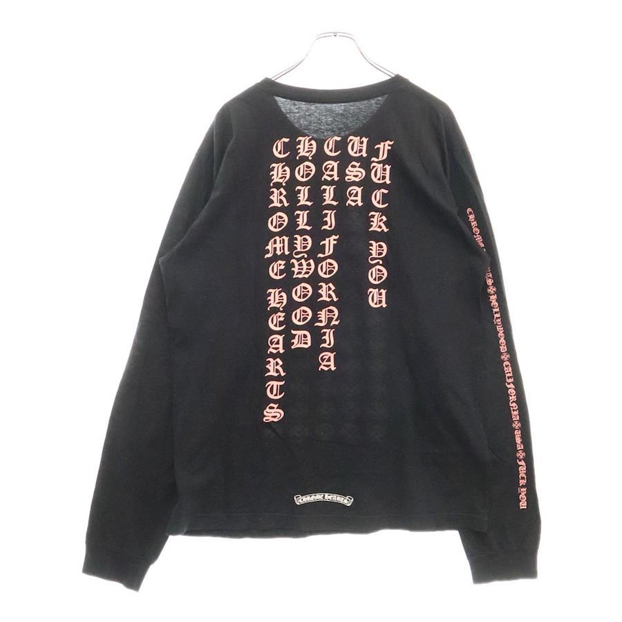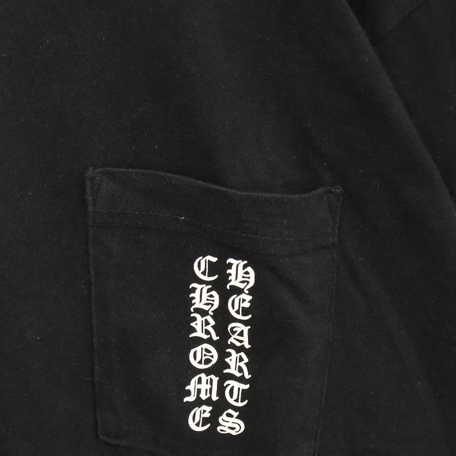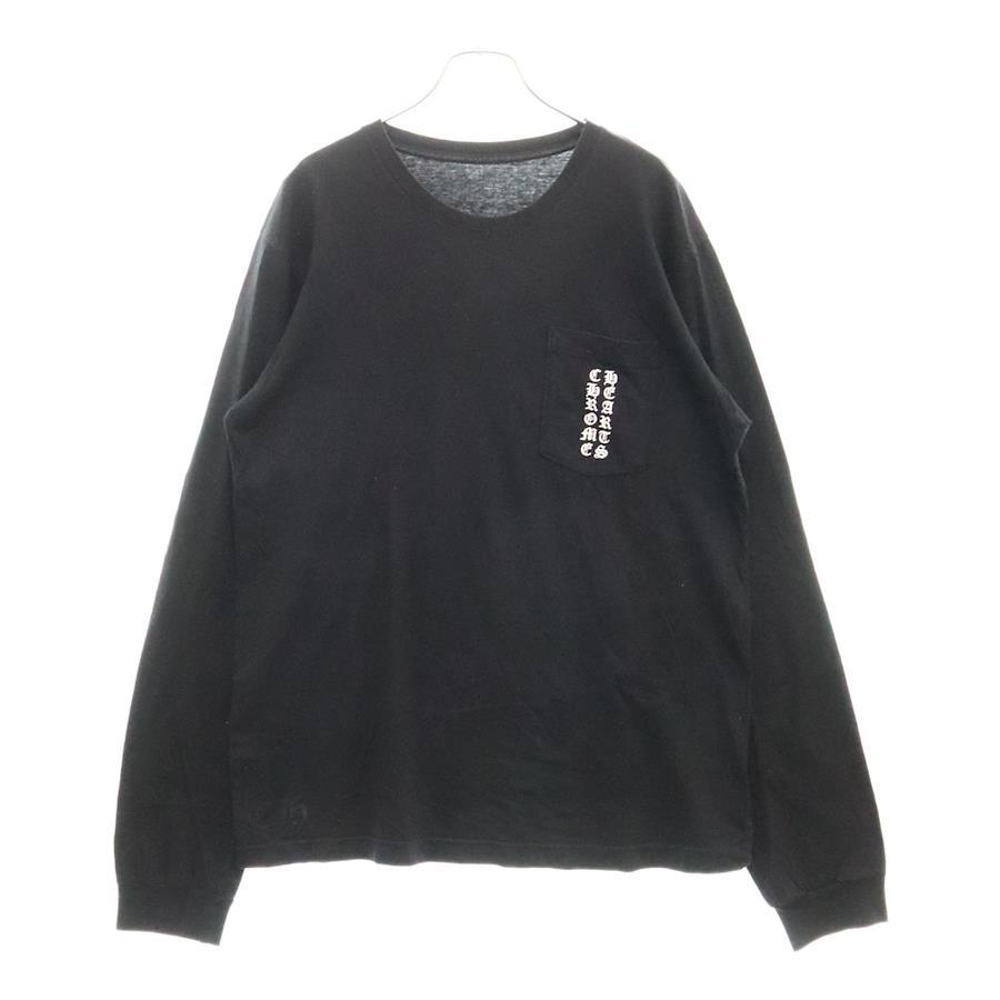 [モデル]バックレタリングロゴプリント ポケット付き クルーネック長袖Tシャツ カットソー ブラック