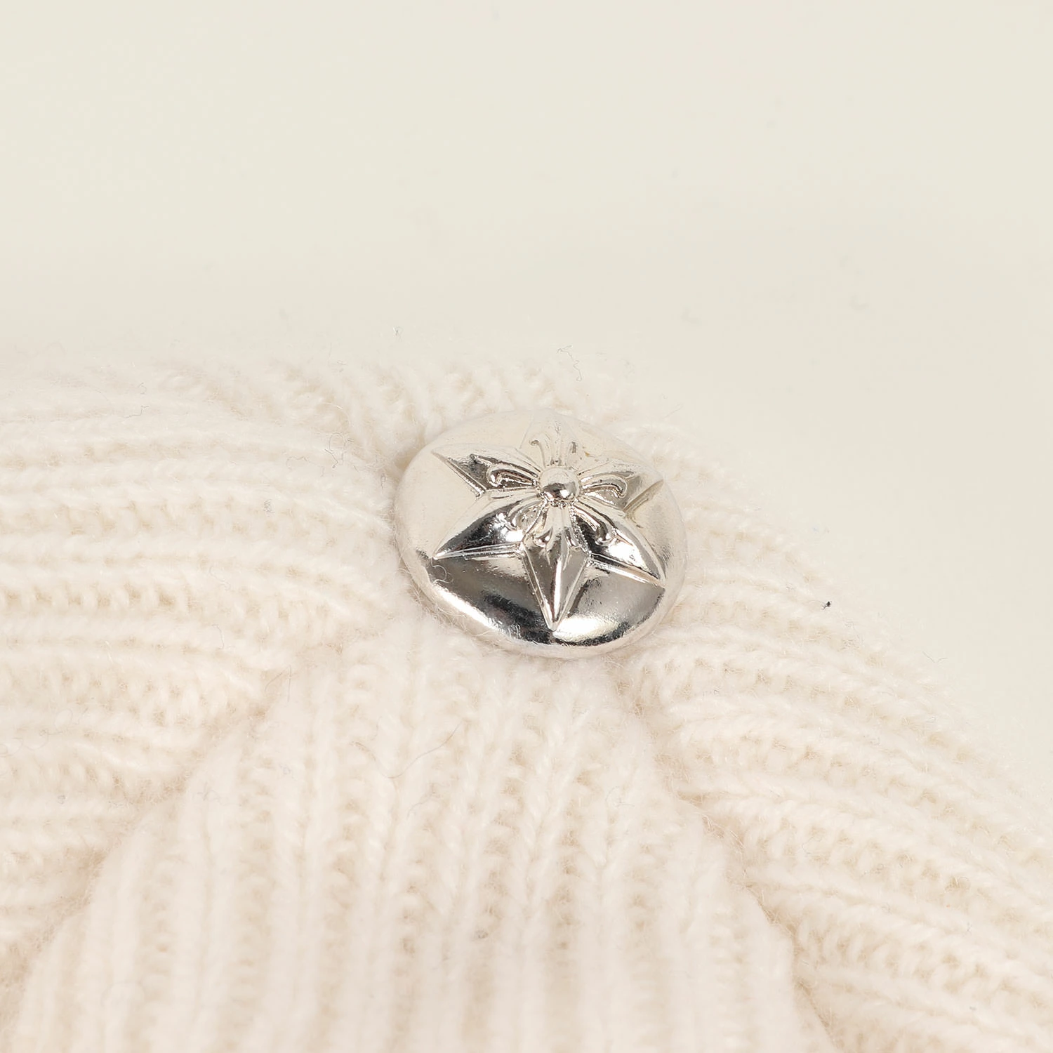 | 商品説明 | ふっくらとしたリブ編みのカシミヤ素材を使用し、ルーズシルエットで仕上げたオリジナルビーニー「BIG DADDY」です。折り返し部分にCHロゴ、クロスマークをデザインしています。トップ部分に付属したシルバー製のスターボタンがアクセントになります。 |