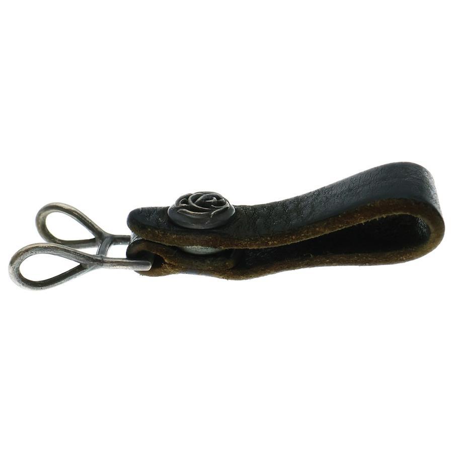 [モデル]BELT LOOP ベルトループ フローラルボタン レザーベルトループ ブラック/シルバー