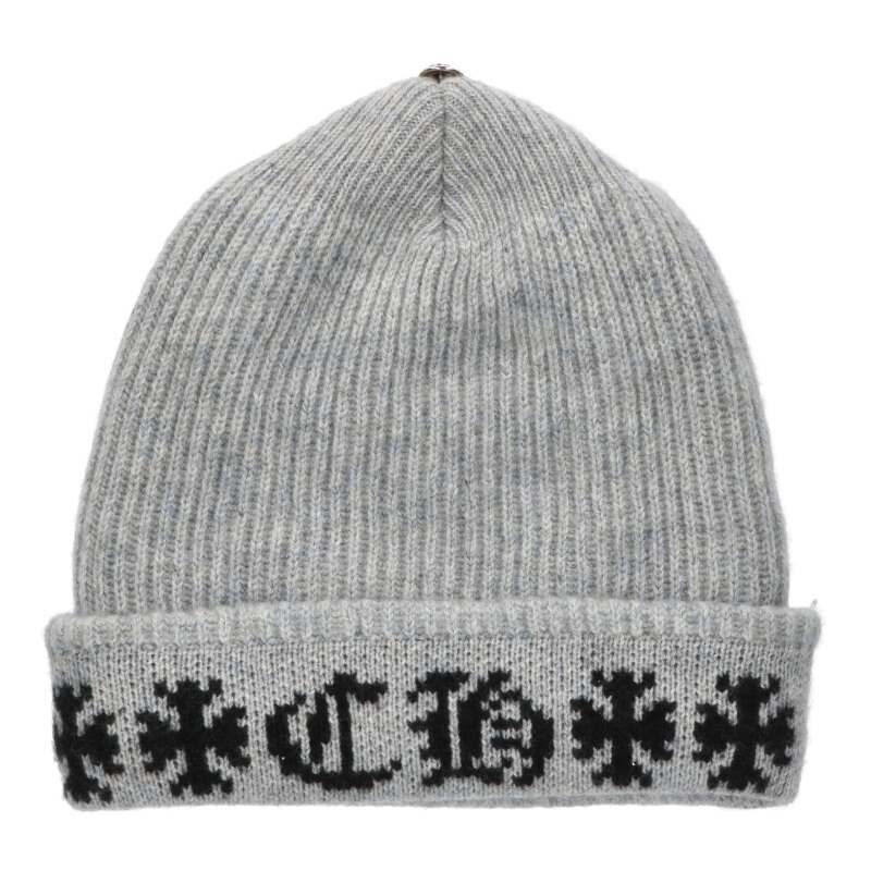 Chrome Hearts BIG DADDY Cross Button CH Plus Embroidered Cashmere Knit Cap (Gray) [704062] [SJ02] [Accessories] [Used] bb82#rinkan*S