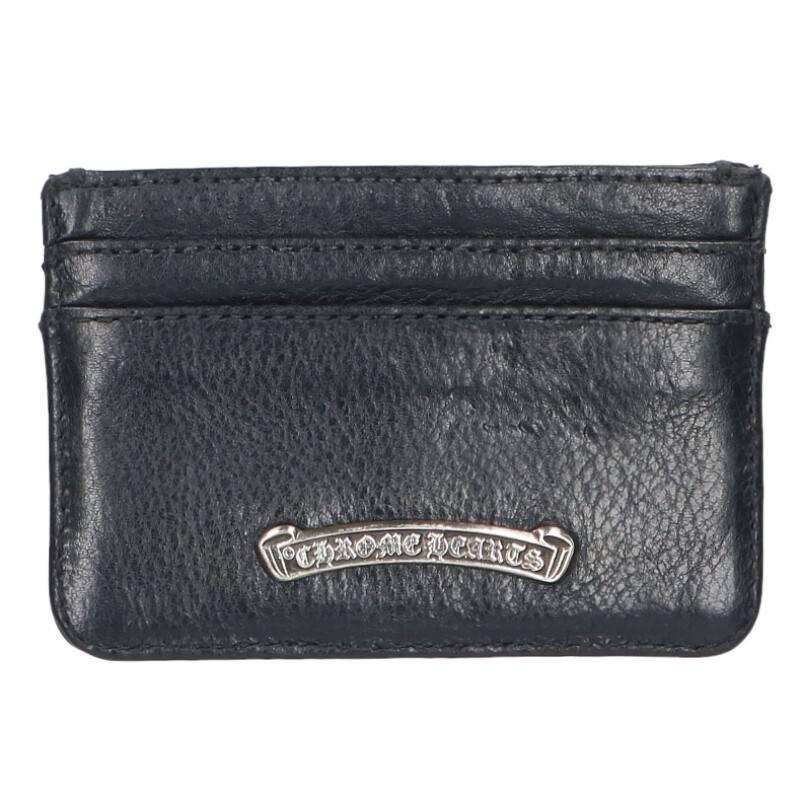 Chrome Hearts <br> DOUBLE SIDE Leather Card Case with Dagger Decoration and Scroll Label (Black x Silver) [323062] [OK15] [Accessories] [Used] bb411#rinkan*B