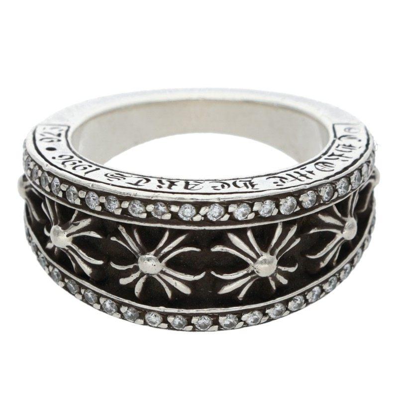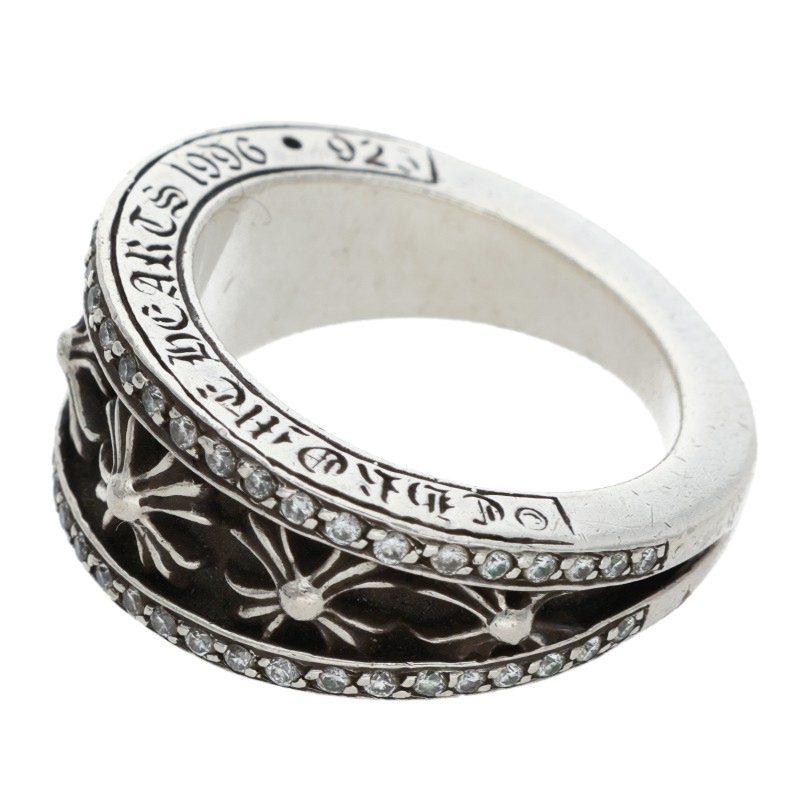 Chrome Hearts <br>Size: 18.5 NARROW V CH PLUS P DMND A After-PAVE Silver Ring (Silver and Clear, 16.24g) [701152] [OS06] [Accessories] [Pre-owned] bb410#rinkan*B