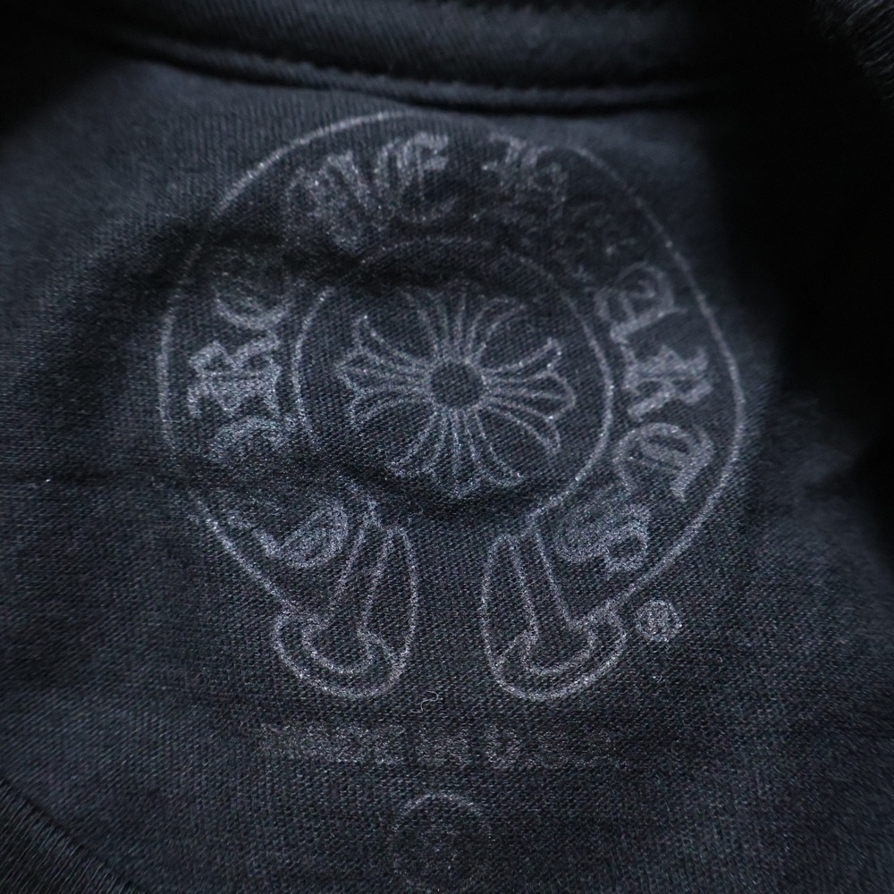 [モデル]CH T-SHIRT スクロールラベルプリント クルーネック ポケット 半袖Tシャツ カットソー ブラック
