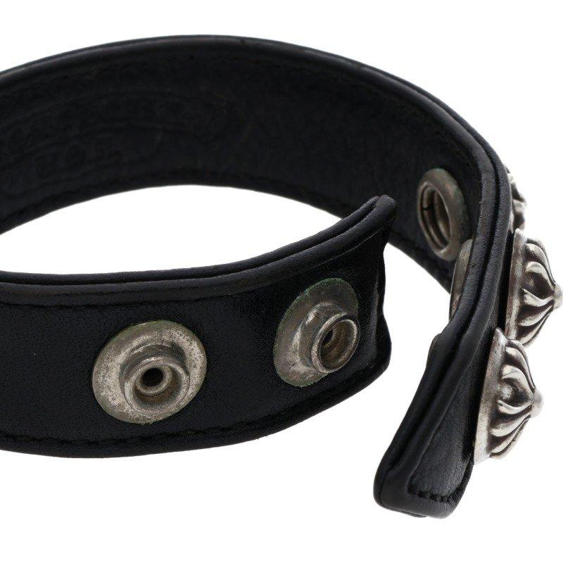 ランク:B (使用感がある商品)状態備考:シルバー部分に小傷があります所々に擦れがありますレザー部分に汚れがありますブランド:クロムハーツサイズ:-色:ブラック×シルバー実寸:ベルト幅2.1cm 手首周り最大16cm調節可重さ:総重量33.22g素材:表記なし付属品:なしその他特徴:-管理番号:15163-250929-0250