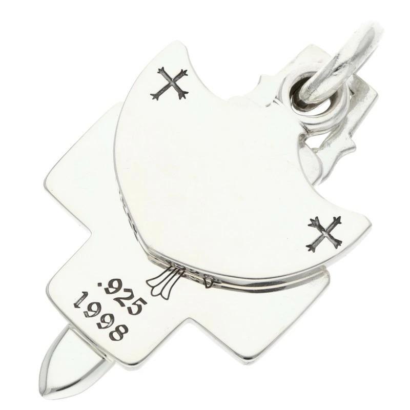 ランク:B (使用感がある商品)状態備考:所々に擦れ、小傷があります刻印一部に薄れがありますブランド:クロムハーツサイズ:-色:シルバー実寸:横2.8cm 縦4.9cm重さ:23.34g素材:925 スターリングシルバー付属品:なしその他特徴:-管理番号:15162-250928-0464
