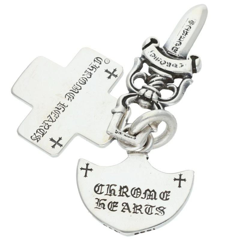 ランク:B (使用感がある商品)状態備考:所々に小傷、擦れがあります刻印一部に薄れがありますブランド:クロムハーツサイズ:-色:シルバー実寸:横最大2.7cm 縦最大4.9cm重さ:22.93g素材:925付属品:なしその他特徴:-管理番号:15162-250930-0522