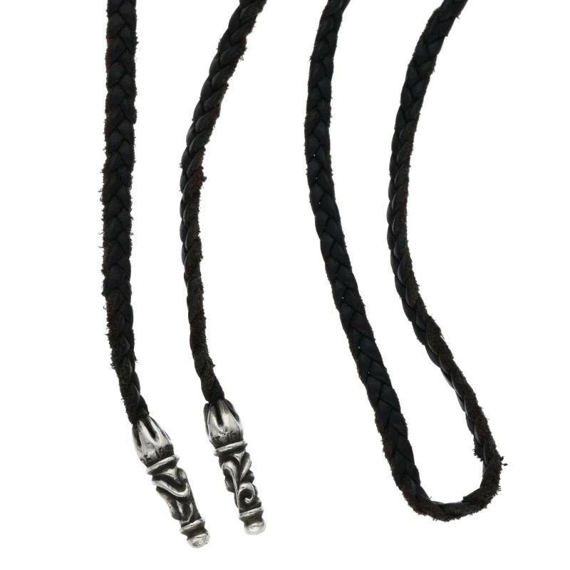 ランク:B (使用感がある商品)状態備考:シルバー部分に小傷がありますレザー部分に変色、ささくれ立ち、使用跡があります全体的に擦れがありますブランド:クロムハーツサイズ:-色:ブラック×シルバー実寸:紐幅0.5cm 全長122cm重さ:総重量11.08g素材:925付属品:なしその他特徴:-管理番号:15161-251017-0149