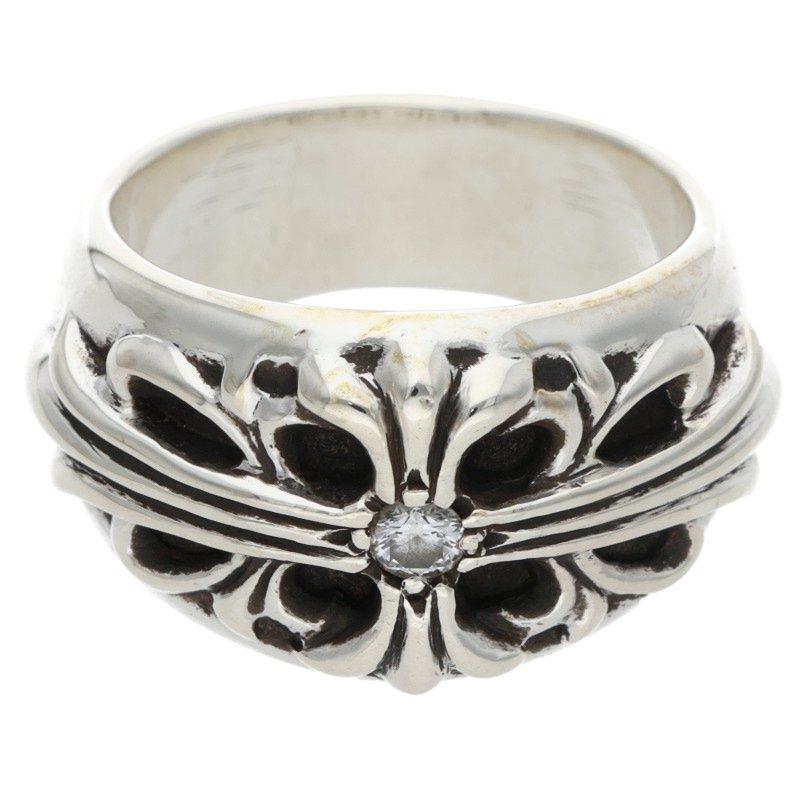 Chrome Hearts ChromeHearts Size: 18.5 0 FLRL CRS 1DIA/Floral Cross 1 Diamond/Silver Ring