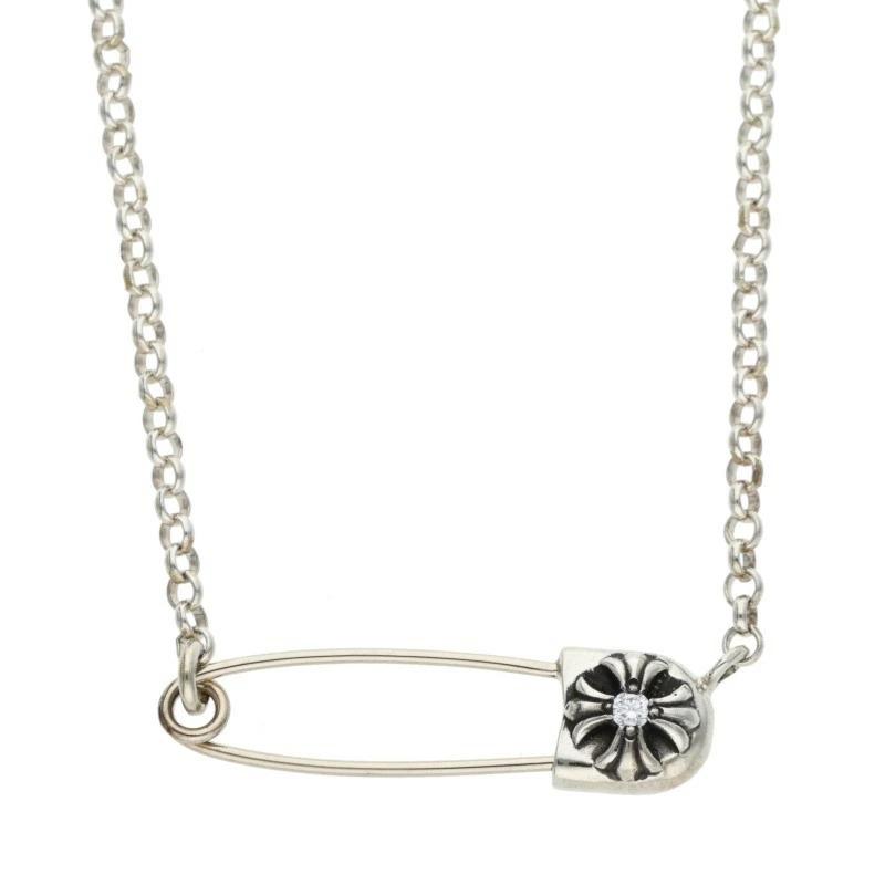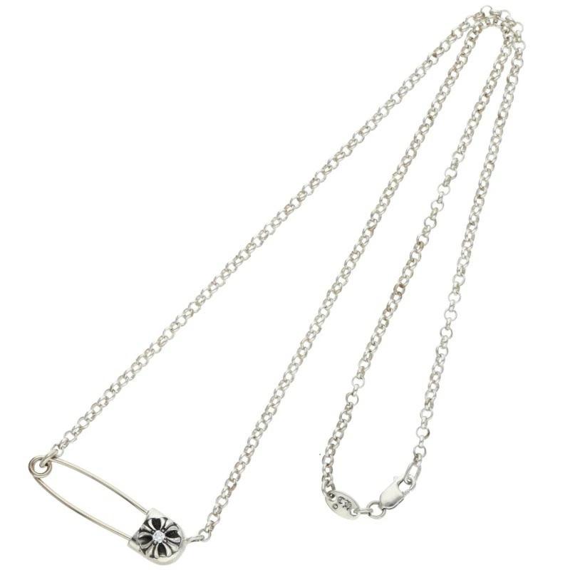 Chrome Hearts ChromeHearts Size: 18 inch 0 SAFETY PIN DIA R18 / Safety Pin Roll Chain 1 Diamond / Silver Necklace