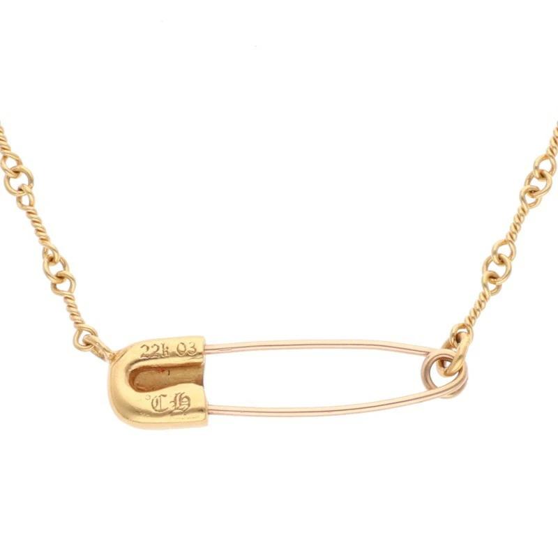 ランク:B (使用感がある商品)状態備考:セーフティピンに歪みがあります細かい傷がありますブランド:クロムハーツサイズ:20inch色:イエローゴールド×クリア実寸:トップ横3.2cm×縦0.8cm チェーン全長51cm重さ:11.78g素材:22K付属品:なしその他特徴:-管理番号:15161-251010-0242