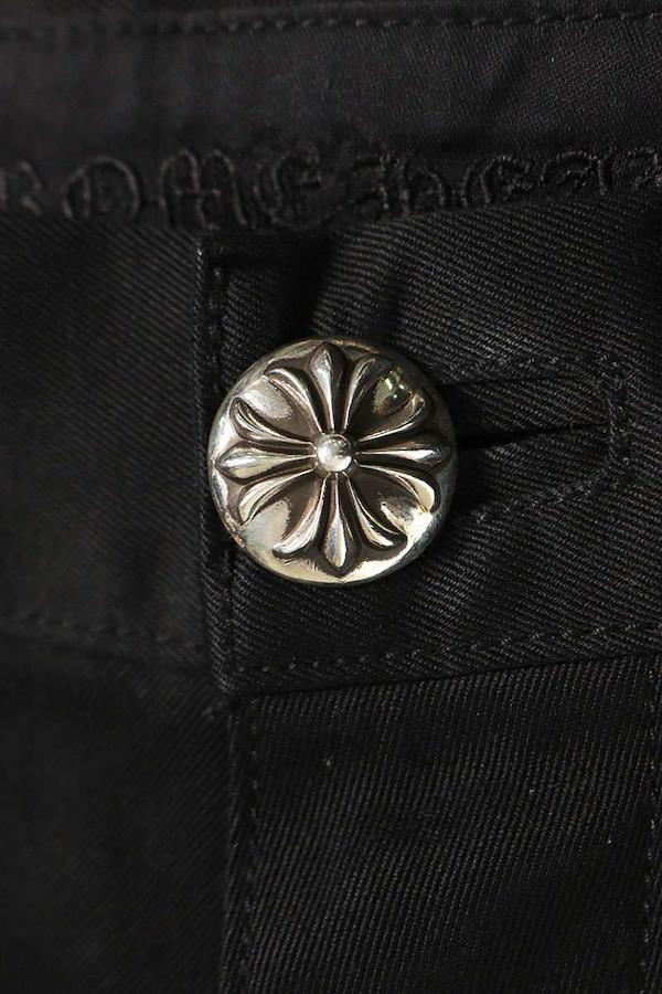ランク:A (使用感が少ない商品)状態備考:全体的に若干の毛羽立ちがありますブランド:クロムハーツサイズ:30インチ色:ブラック×シルバー×ブラウン調実寸:ウエスト幅41cm 股上31cm ワタリ幅32.5cm 股下77cm 裾幅21cm重さ:-素材:(表地) コットン (皮革部分) 羊革、牛革付属品:なしその他特徴:ボタンフライデザインです管理番号:10829-250713-0070