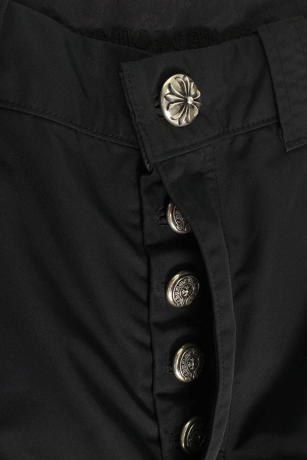 ランク:B (使用感がある商品)状態備考:裾付近に汚れがありますブランド:クロムハーツサイズ:30インチ色:ブラック×シルバー実寸:ウエスト幅39cm 股上31cm ワタリ幅32cm 股下71cm 裾幅23cm重さ:-素材:(本体) ナイロン (裏地) ナイロン (裏地2) コットン (革部分) 牛革 (革部分2) 羊革付属品:なしその他特徴:ボタンフライデザインです管理番号:10829-250513-0059