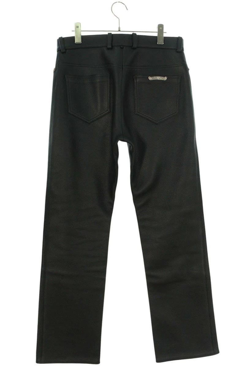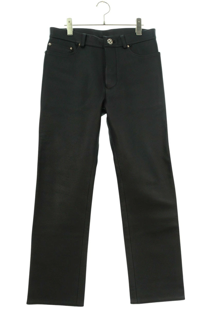 ランク:A (使用感が少ない商品)状態備考:フロント左膝付近に若干の汚れがありますフロント右膝付近に若干の擦れがありますブランド:クロムハーツサイズ:30インチ色:ブラック×シルバー実寸:ウエスト幅38cm 股上28.5cm ワタリ幅28cm 股下72cm 裾幅21cm重さ:-素材:(表地) 牛革 (裏地) コットン付属品:なしその他特徴:ボタンフライデザインです管理番号:10829-250715-0065