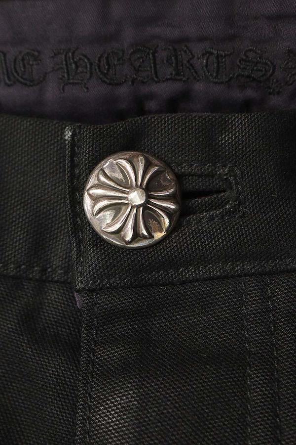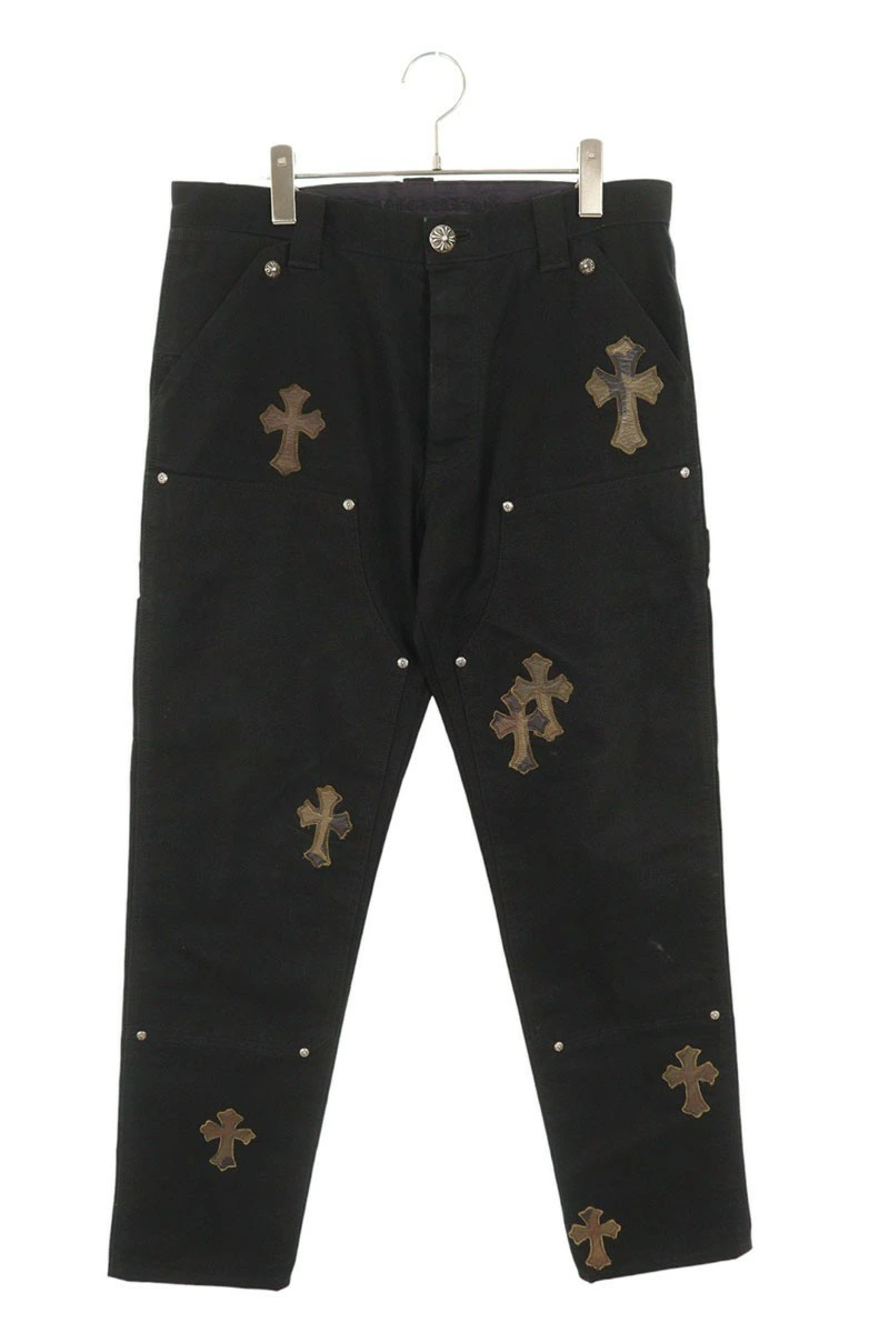 ランク:B (使用感がある商品)状態備考:全体的に擦れや毛羽立ちがありますブランド:クロムハーツサイズ:32インチ色:ブラック×カーキ実寸:ウエスト幅41cm 股上29cm ワタリ幅31cm 股下79cm 裾幅18cm重さ:-素材:(本体) コットン (革) 牛革付属品:なしその他特徴:ボタンフライデザインです管理番号:10829-250921-0030