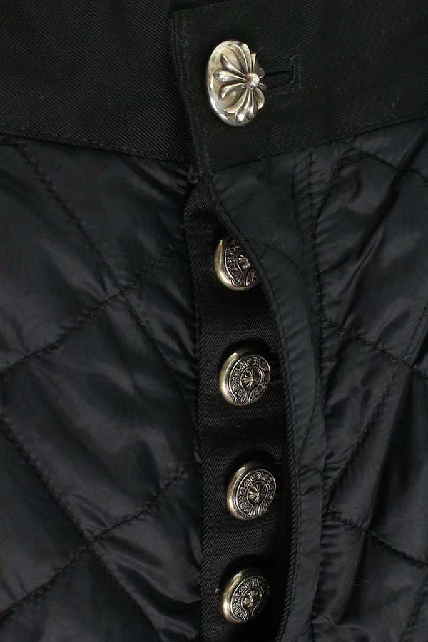 ランク:B (使用感がある商品)状態備考:ウエスト、裾に若干の擦れがありますブランド:クロムハーツサイズ:32インチ色:ブラック×シルバー実寸:ウエスト幅41cm 股上33cm ワタリ幅33.5cm 股下76.5cm 裾幅21.5cm重さ:-素材:(表地) ナイロン (別布) コットン (裏地) コットン (中綿) ポリエステル (皮革部分1) 牛革 (皮革部分2) 羊革付属品:なしその他特徴:ボタンフライデザインです管理番号:10829-250607-0035