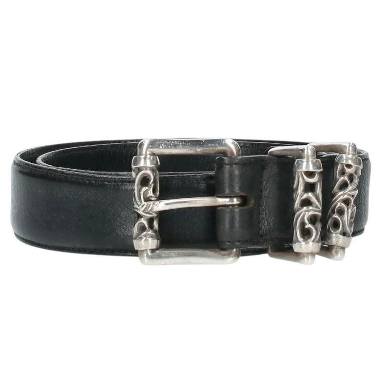 ランク:B (使用感がある商品)状態備考:ベルト穴が追加されていますベルト部分に歪み、擦れがありますコバ部分に剥がれ、ひび割れがありますブランド:クロムハーツサイズ:34色:ブラック×シルバー実寸:バックル横4.2cm×縦5cm ベルト幅3.5cm ウエスト79cm~91.5cm調節可重さ:-素材:表記なし付属品:なしその他特徴:-管理番号:15267-250831-0245