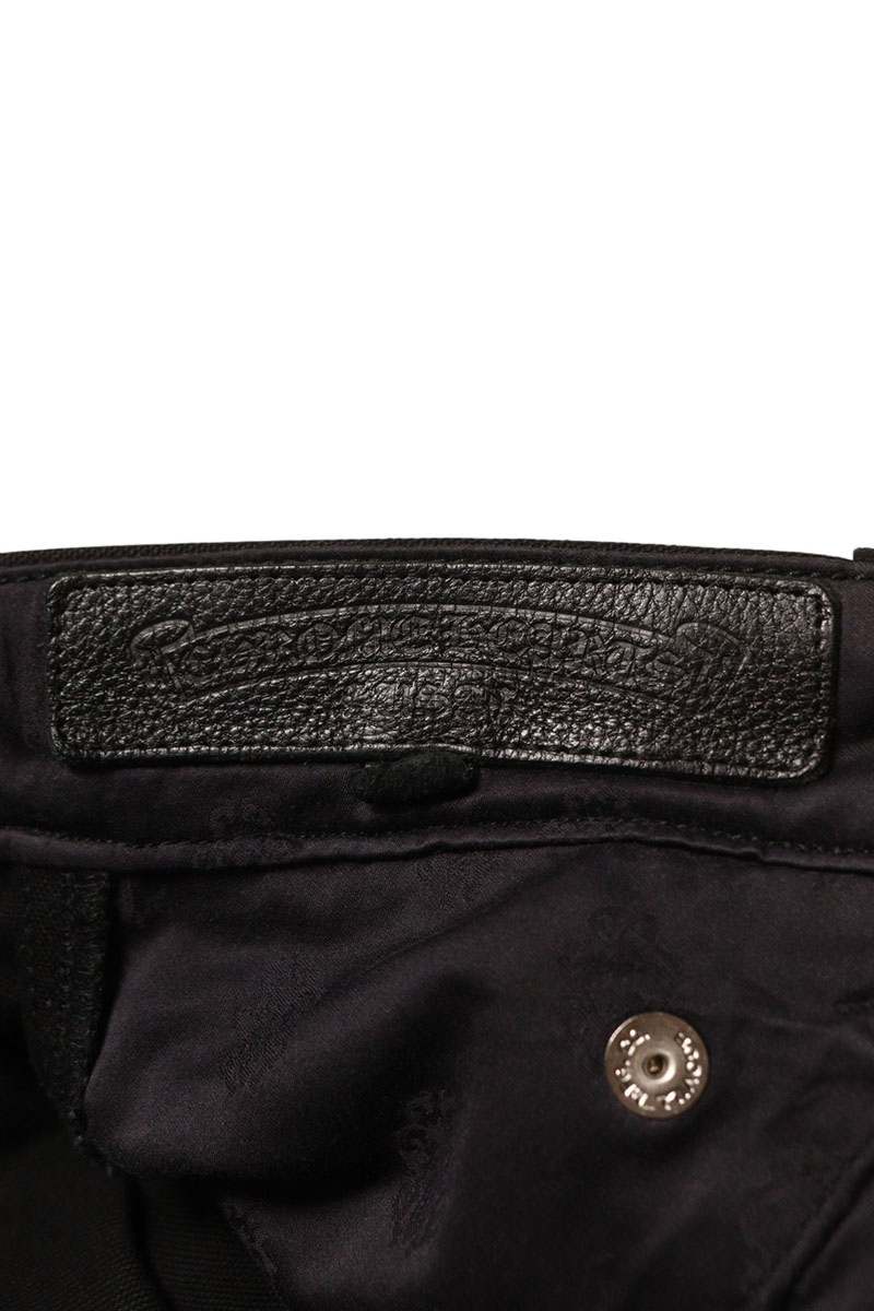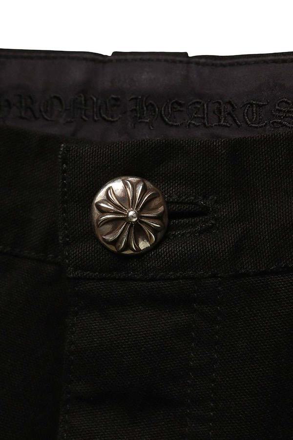 ランク:B (使用感がある商品)状態備考:裾、フロント左中央に汚れがあります所々に擦れがありますブランド:クロムハーツサイズ:34インチ色:ブラック×シルバー実寸:ウエスト幅42.5cm 股上31.5cm ワタリ幅36cm 股下74.5cm 裾幅23cm重さ:-素材:コットン付属品:なしその他特徴:ボタンフライデザインです管理番号:10829-251119-0082