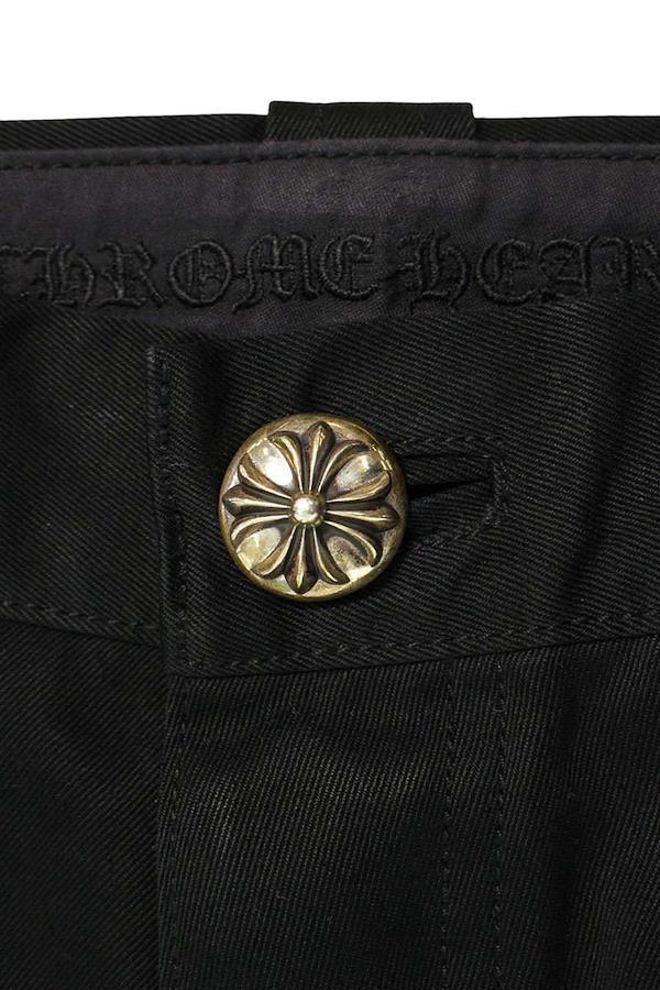 ランク:A (使用感が少ない商品)状態備考:フロント腿付近に若干の汚れがありますブランド:クロムハーツサイズ:34インチ色:ブラック×シルバー実寸:ウエスト幅45cm 股上32cm ワタリ幅35cm 股下75cm 裾幅23cm重さ:-素材:コットン付属品:なしその他特徴:ボタンフライデザインです管理番号:10829-250829-0046