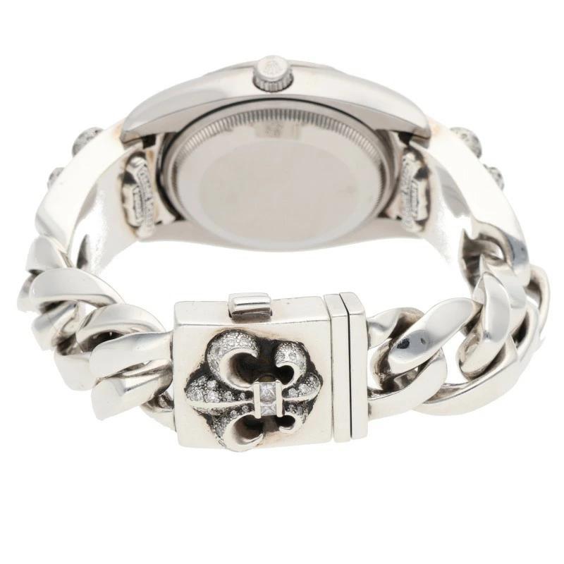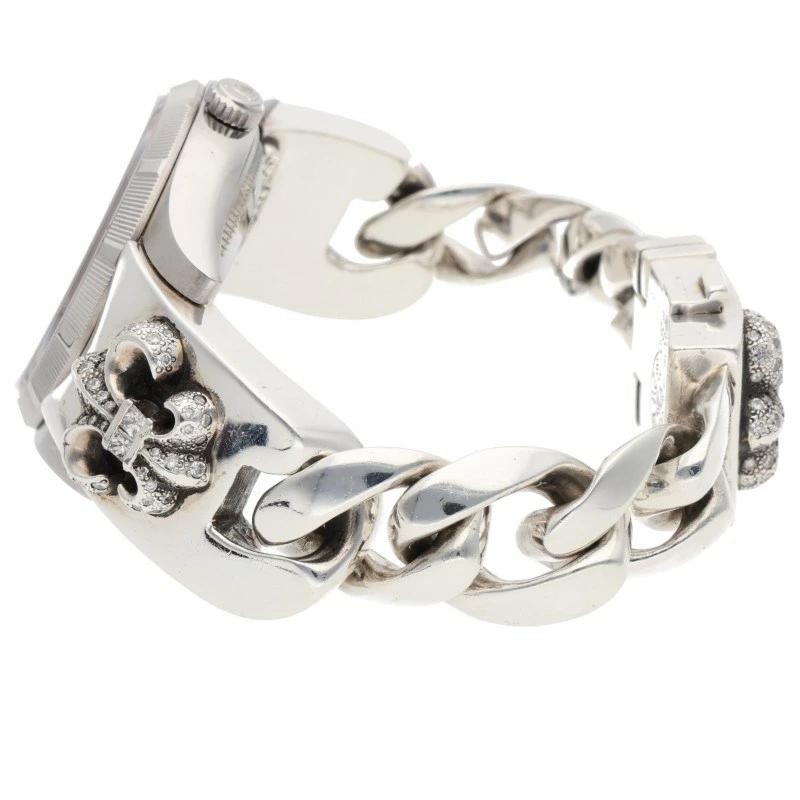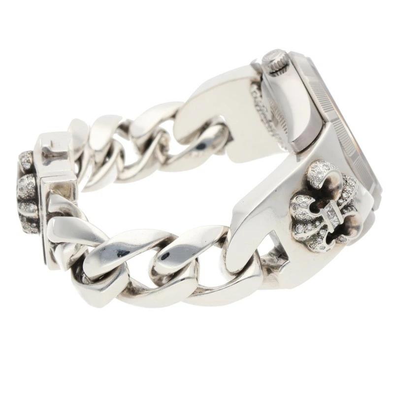 ランク:B (使用感がある商品)状態備考:全体的に傷がありますブランド:クロムハーツサイズ:34mm色:シルバー×クリア実寸:ケース横34mm ベルト幅最大1.9cm 手首周り17cm重さ:169.17g素材:(ブレス) 925付属品:なしその他特徴:-管理番号:15274-251023-0129