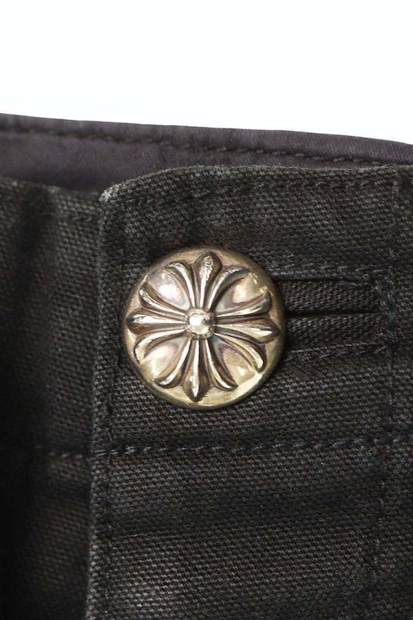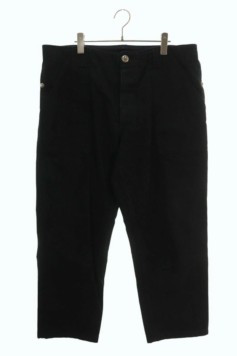 ランク:B (使用感がある商品)状態備考:所々に汚れがあります全体的に擦れや毛羽立ちがありますブランド:クロムハーツサイズ:36インチ色:ブラック×シルバー実寸:ウエスト幅44cm 股上32cm ワタリ幅37cm 股下74cm 裾幅22cm重さ:-素材:コットン付属品:なしその他特徴:ボタンフライデザインです管理番号:10829-251113-0017
