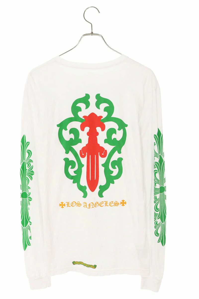 ランク:B (使用感がある商品)状態備考:バック下部に汚れがあります全体的に擦れや毛羽立ちがありますブランド:クロムハーツサイズ:L色:ホワイト×グリーン×レッド実寸:肩幅48cm 身幅52cm 着丈69cm 袖丈71cm重さ:-素材:コットン付属品:なしその他特徴:-管理番号:10518-251011-0288
