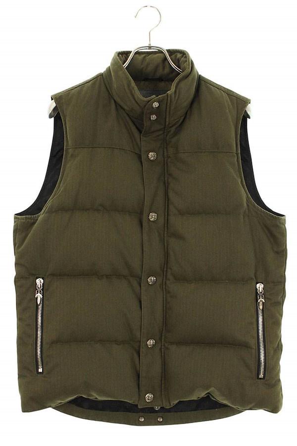 ランク:B (使用感がある商品)状態備考:バック中央付近に若干の汚れがあります若干の毛羽立ちがありますブランド:クロムハーツサイズ:L色:カーキ×シルバー実寸:肩幅42cm 身幅57cm 着丈68.5cm重さ:-素材:(表地) コットン (裏地) シルク、ポリアミド、ポリエステル (中綿)