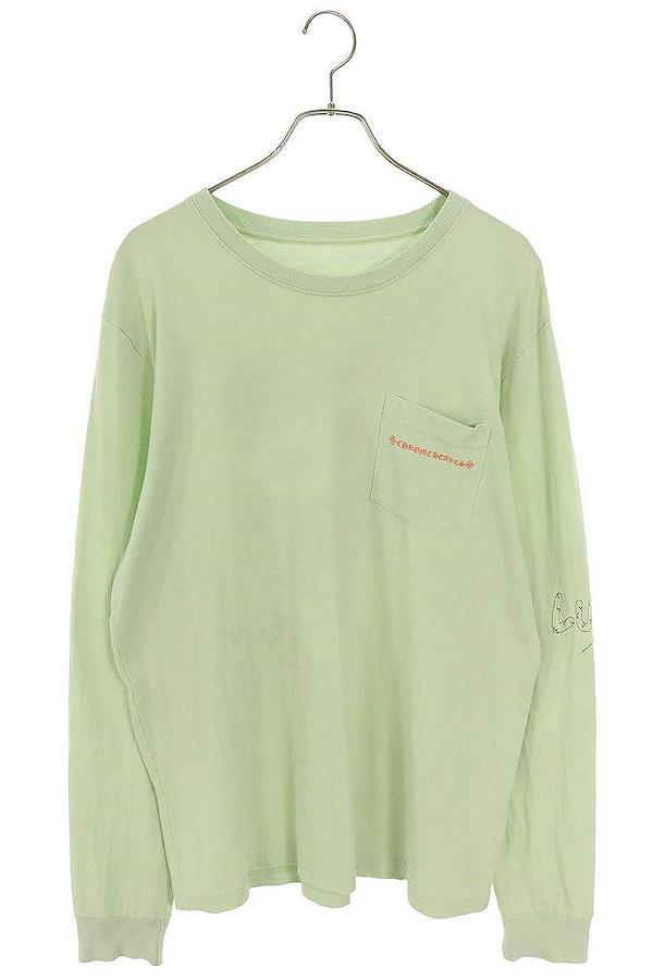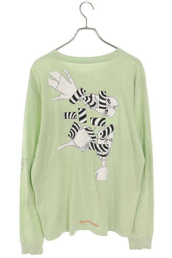 ランク:B (使用感がある商品)状態備考:プリント部分にひび割れ、剥がれがありますフロント左肩付近に小穴がありますフロント中央、袖口、首元等に汚れがあります全体的に若干の色褪せ、毛羽立ちがありますブランド:クロムハーツサイズ:L色:ライトグリーン実寸:肩幅51cm 身幅55.5cm 着丈71cm 袖丈73cm重さ:-素材:コットン付属品:なしその他特徴:-管理番号:10518-240718-0042